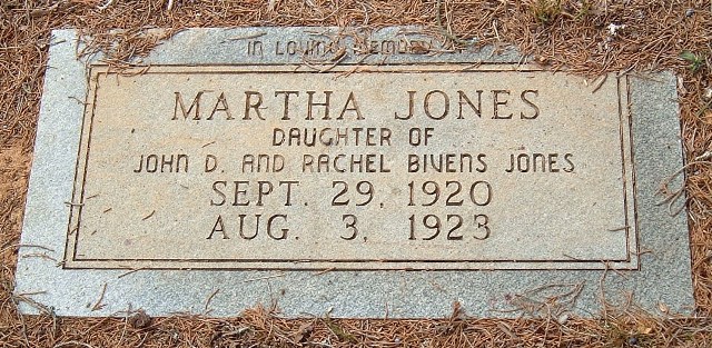 September 29, 1920 | August 3, 1923 | dau. of John D. & Rachel Bivens Jones |