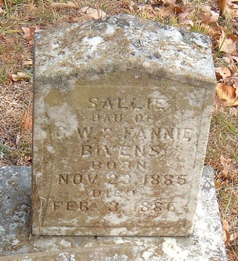 November 23, 1885 | February 3, 1886 | dau. of G.W. & Fannie Bivens |