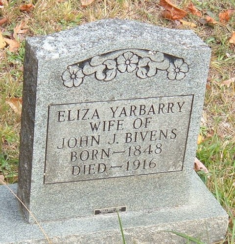1832 | November 16, 1902 | H/o Eliza Yarberry; S/o James & Parthena Turner Bivens |