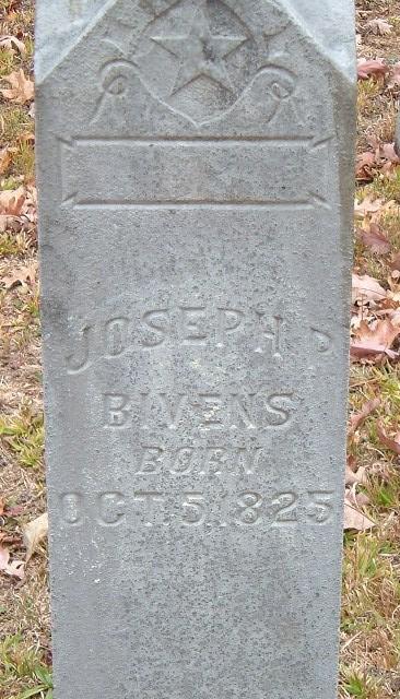 October 5, 1825 | June 21, 1917 | [Plot Joseph P.; Esther; S/o James & Parthena Turner Bivens] |