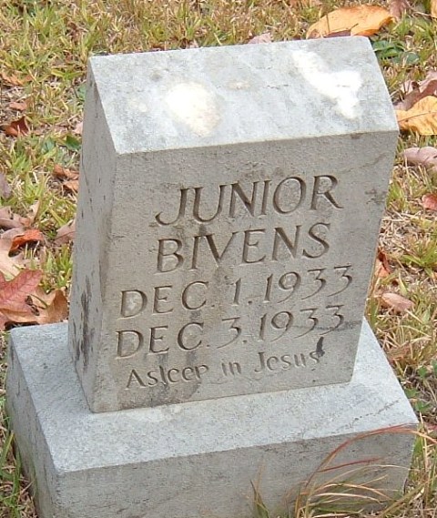 December 1, 1933 | December 3, 1933 | Asleep in Jesus. S/o Frank & Stella Bivens |