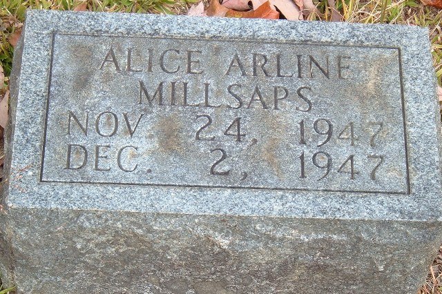 November 24, 1947 | December 2, 1947 | D/o Silas & Ruby Bivens Millsaps & sister to Nancy Millsaps Fischer. |