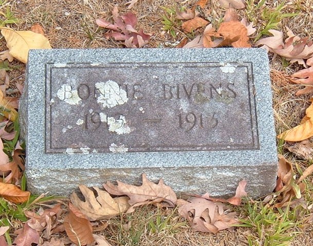 | Bivens, Gladis | May 10, 1914 | December 10, 1914 | D/o Philip (Jefferson) & Clemey Pickelsimer Bivens. No marker,per death cert. |