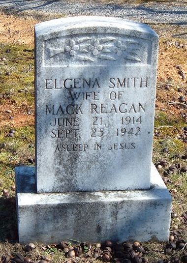 Elgena Smith Reagan June 21, 1914 - Sep. 25, 1942. W/o Mack Reagan