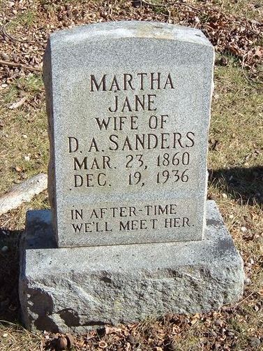 Martha Jane Sanders Mar. 23, 1860 - Dec. 19, 1936. W/o D.A. Sanders