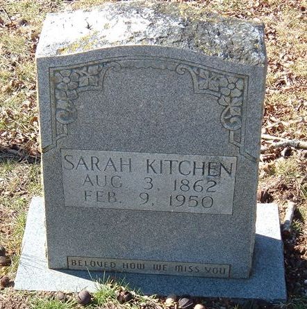 Sarah Kitchen Aug. 3, 1862 - Feb. 9, 1950. D/o Wm. & Rachel Robinson Burris