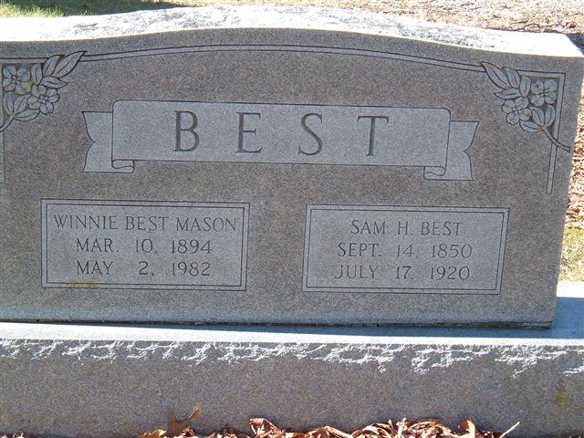 Winnie Best Mason Mar. 10, 1894 - May 2, 1982. She was a Britton, md. Sam Best 1/14/1917