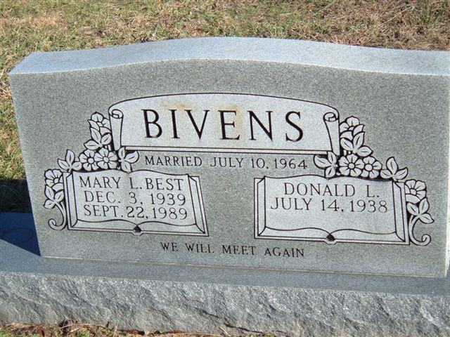 Mary L. Best Bivens Dec. 3, 1939 - Sep 22, 1989