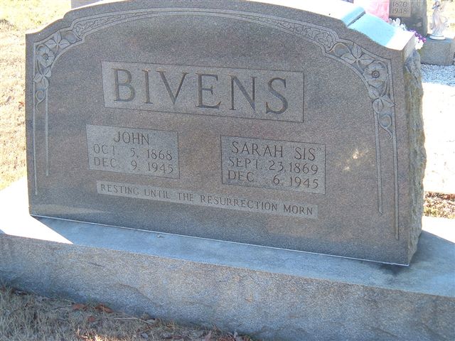 Sarah "Sis" Bivens Sep. 23, 1869 - Dec. 6, 1945