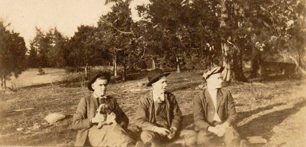 Robert Lee Hensley holding dog, next to Melvin Burris and Washie Roberts