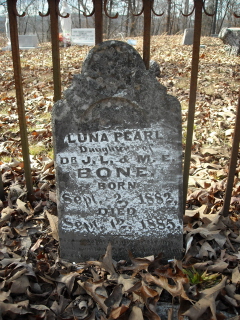 graves: #1: Bone, ____, 1861-____, "dau of Dr. JL & MF ____"] |