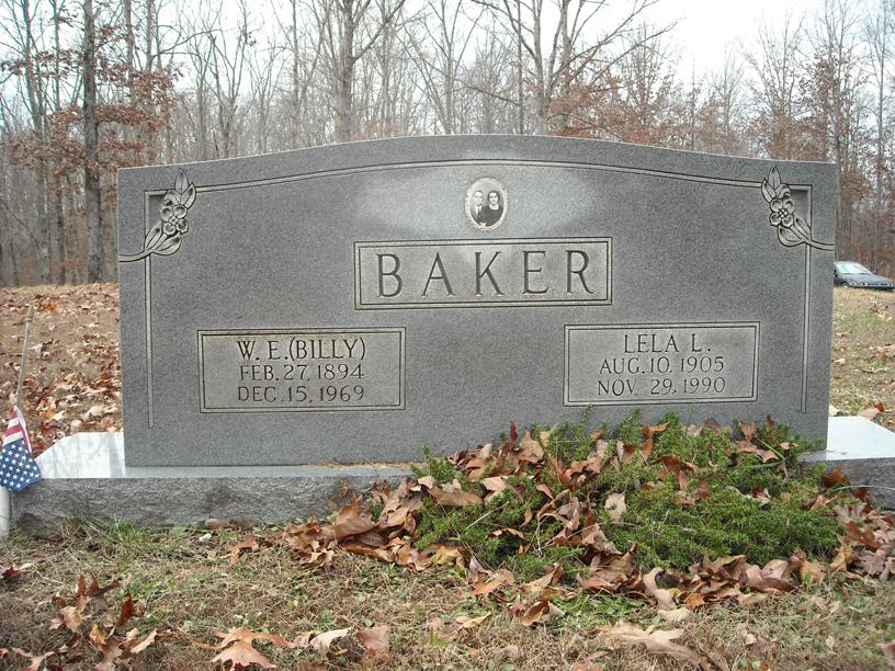 military marker as footstone "William E. Baker" "Tennessee PFC 136 Base