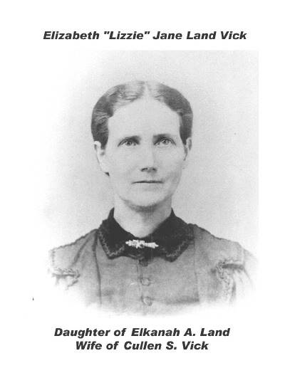 Vick married Elizabeth J. Land, dau of E. A. Land on Sept 3 1869. Meda