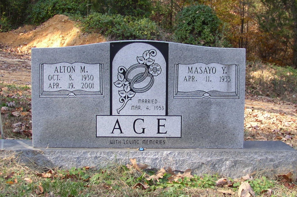 Legion flag holder by marker]. [Shares tombstone with Masayo Age.] |