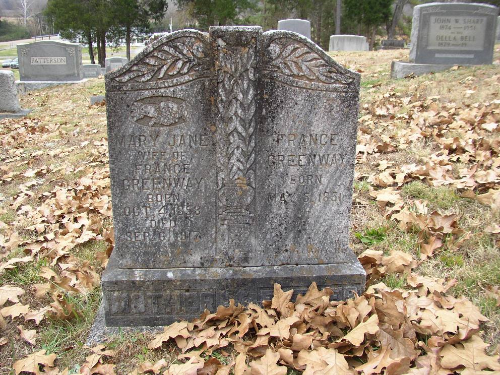 tombstone with Mary Jane Greenway (b 1858)] |