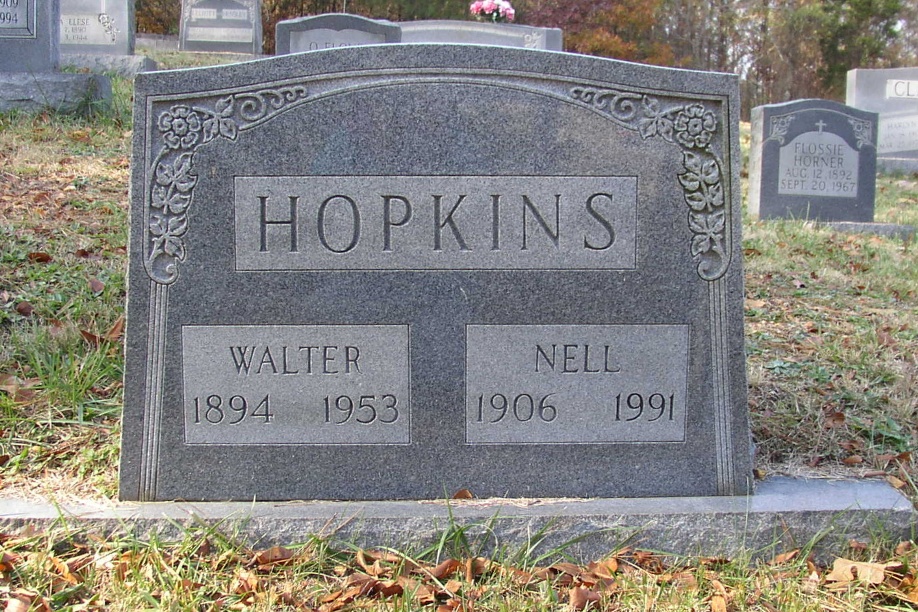 military marker as footstone "Walter O. Hopkins"