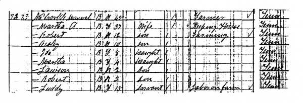In the 1880 U.S. Census, June 10, Henderson Co., Tenn., Civil District 4, page 327 (in that part of Henderson County that became part of Chester County in 1882), the parents of this child are listed: