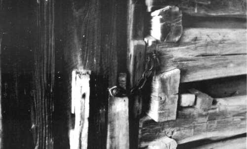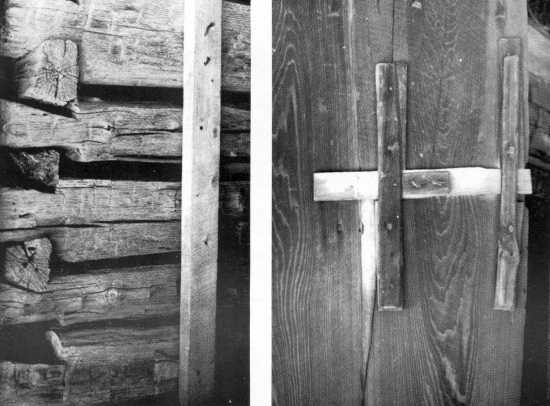 Old Log Corner (left) and Side Latch on Stable and Crib Doors (right)