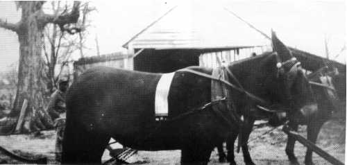 Jack Massengill, Tick Massengill, Rufus Trice, and Ed Davis used mules to plow