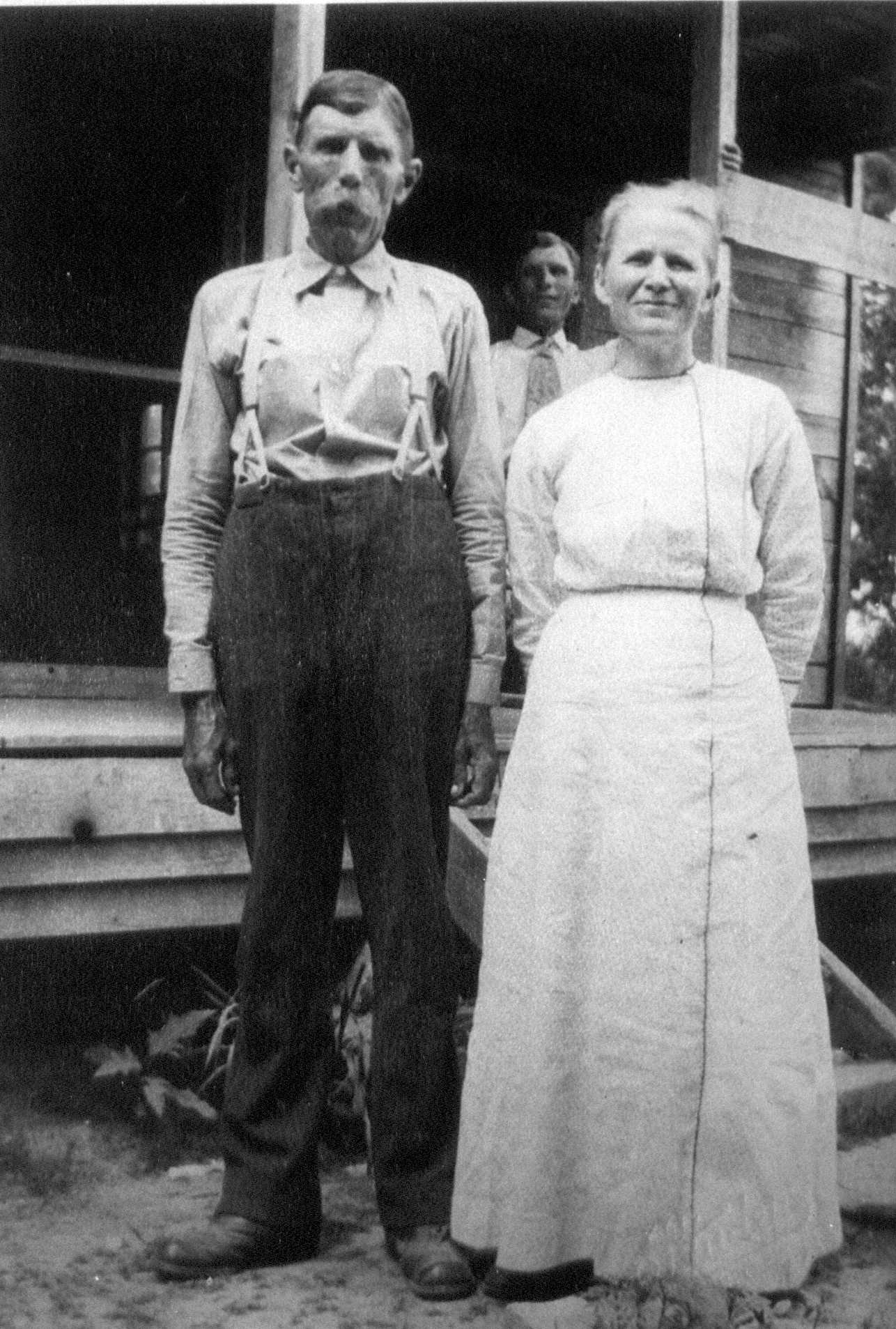 William Garrett Moore (1862-1930) and Sophie Rushing Moore (1871-1958) by Moore house, circa 1915. Elbert Lee Moore (1893-1967) in background.
