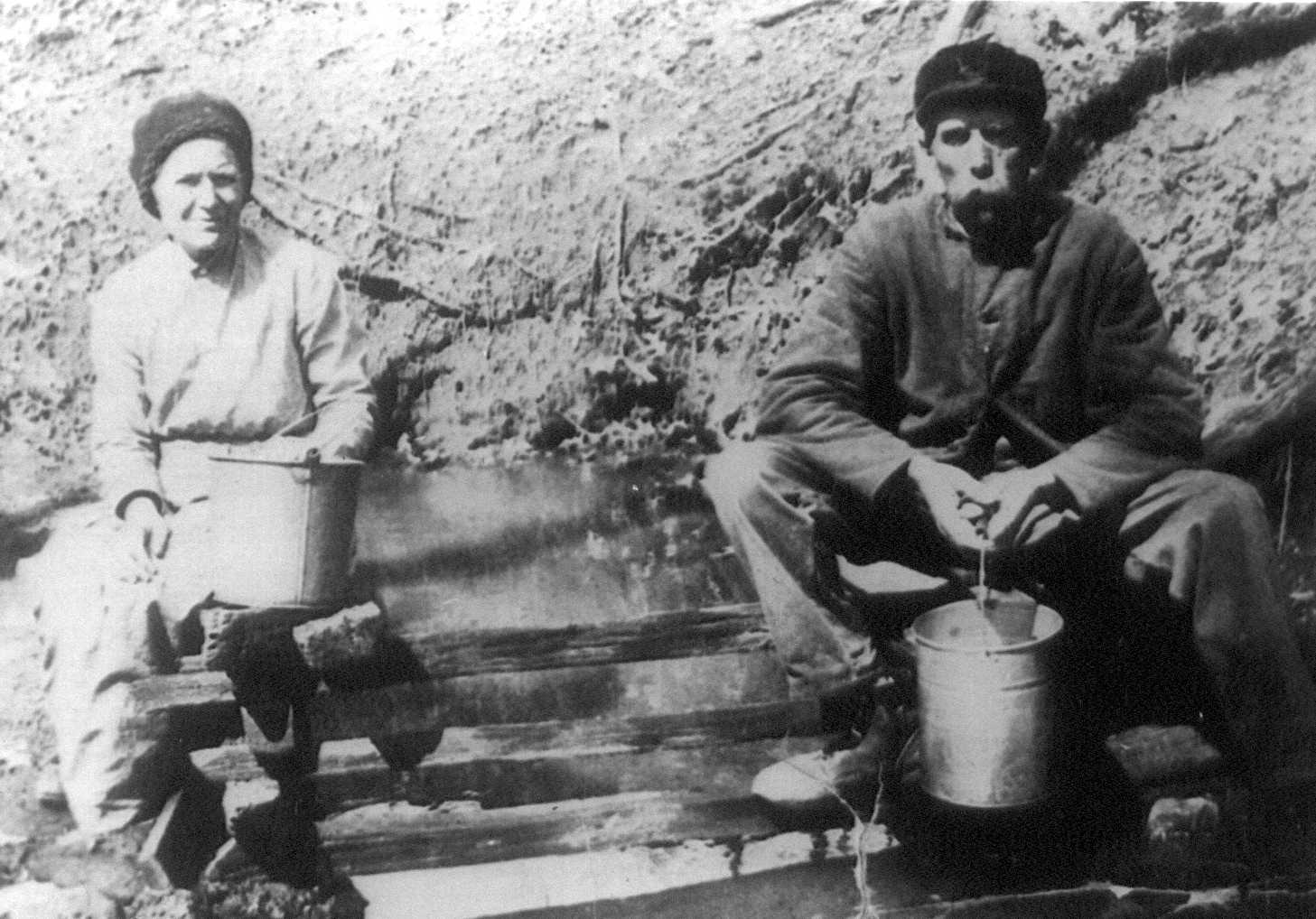 Sophie Rushing Moore (1871-1958) and William Garrett Moore (1862-1930), by spring on Moore farm, 1920s.