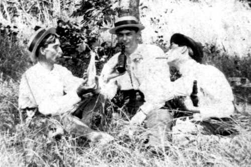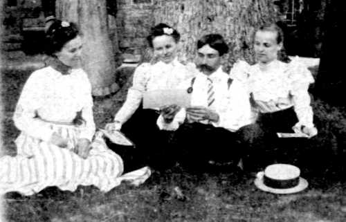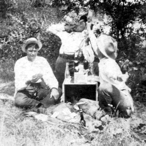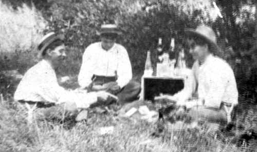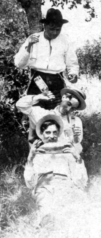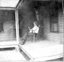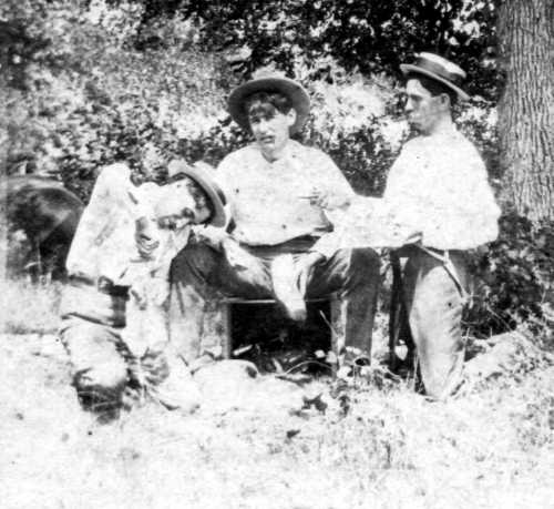 The remaining five photographs feature Granville and Lige Moore and two other men, Dr. Bond and Will Doulen on an outing. The location is unidentified. Assuming these photographs were made the same time as those above, the location probably is on the banks of the Beech River at the rear (north boundary) of the Moore property.