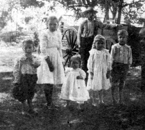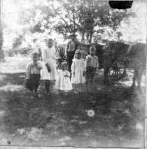 Wesley, Esther, Bess, Mary, and Bert Moore; Probably W. G. Moore by Wagon