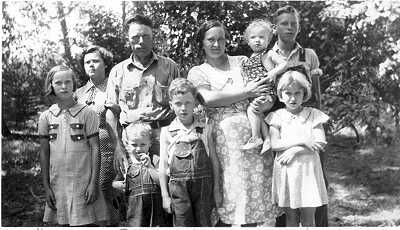 Wes Moore family, July 1939. Front row children: Norene, Bill, Jim,