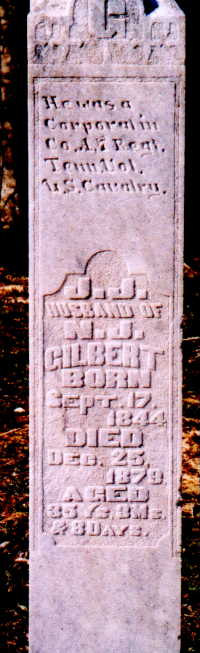 Gilbert, J. J., Sept. 17, 1844-Dec. 25, 1879, "Husband of N. J. Gilbert" "He was a corporal in Co. A 7 Regt. Tenn. Vol. U.S. Cavalry"