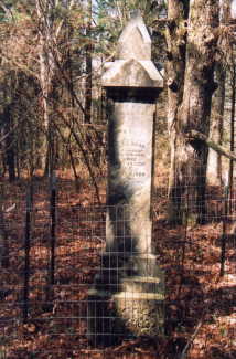 This Dodd Cemetery is located in the woods on the west side of Poplar Springs School Road just north of the intersection with Taylortown Road. There is one double marker, surrounded by a recent wire fence. There are some mounds and depressions nearby, but if is difficult to know if these represent additional burials. David Donahue recorded Dodd Cemetery March 27, 2004.