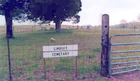 Lindsey Cemetery is a well-maintained family cemetery located at the southern end of Lindsey Cemetery Road. It is hard to determine the age of the cemetery. If fieldstones have been removed, it could be quite old. There are four clearly marked but unidentified graves, including that of a child buried 20 yards west of the nearest marker. There also appear to be faint depressions from several unmarked graves between the gate and the majority of the marked graves.