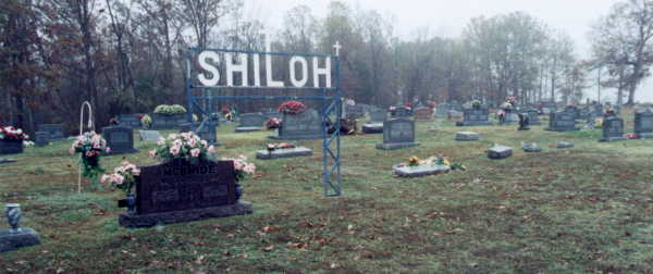 David Donahue recorded Shiloh Cemetery November 13-14, 1999 and checked and updated in April 20, 2004. Travis and Sharon Fiddler recorded Shiloh Cemetery circa 1976. Their record appears in Henderson County, Tennessee Cemetery Inscriptions (R. H. Harris, Memphis, 1976), Vol. 1, pp. 225-230. The Fiddlers recorded minimal information (name, birth and death years only). Their work is noted as "Fiddlers" in the notes below.