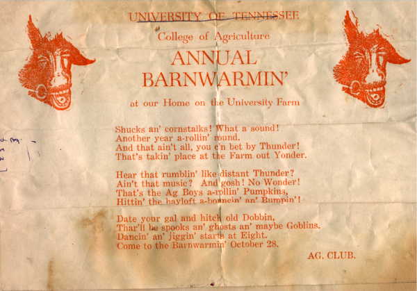 THE UNIVERSITY OF TENNESSEE COLLEGE OF AGRICULTURE ANNUAL BARNWARMIN' 1933 From Imogene Oakley's Scrapbook