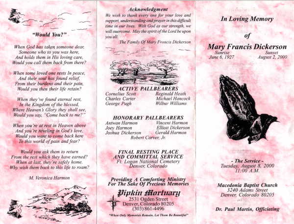 Return to Funeral Programs and Obituaries