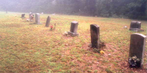 Pleasant Hill Cemetery in early morning fog, August 2003