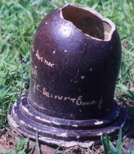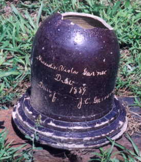 Garner, Maudie Viola, d. 1889, "Dau. of J. C. Garner & Emma J." (pottery marker, broken)
