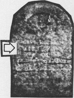 In my Riverside scrapbook, part III, page 33, I mention the large tombstone of Mary Pratt, wife of Moses Pratt, who died September 23, 1869, aged 24 years. A smaller stone, beside her grave to the north, I couldn't "make out" the inscription for which, but cleaning it has shown in the name panel, dimly but certainly, VIO and on the end of this line TT. James Hadaway mentioned in his Oct. 13, 1869 report that Viola H. Pratt and Mary Pratt, had died and been buried in Riverside. This was doubtless mother and daughter. However it may copy, a picture of the tombstone of Viola H. Pratt is shown here, with an arrow pointing to the name mentioned above: