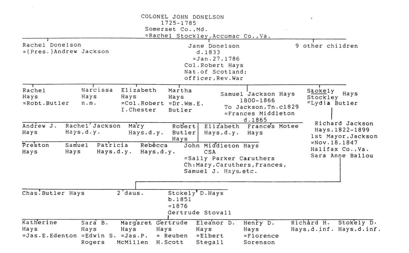 Copyright, Jonathan K. T. Smith, 1993COLONEL JOHN DONELSON DESCENDANT CHART