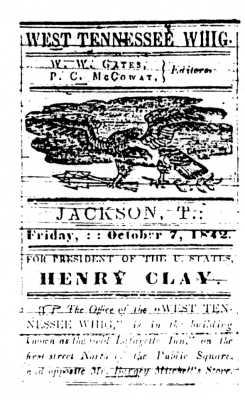 From the first issue of the WEST TENNESSEE WHIG, October 7, 1842