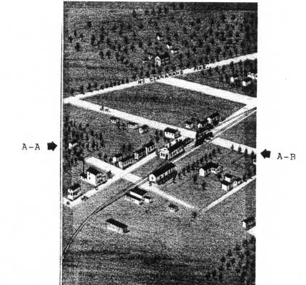(Chicago Lithographing Co., Chicago, Illinois; copy in Library of Congress:GB964,. J2A3, 1870 Rq Rug 176, catalog date of 1941)Segment showing the city cemetery, later known as Riverside Cemetery, as item A on places legend and noted here with an arrow (A-A). This shows the then-northeast corner of the cemetery known as the Carruthers Section, with the sexton's house (built in 1867) and lane leading into cemetery from the east. Arrow A-B indicates Sycamore Street, then and now. The section of the cemetery just north of the Carruthers Section had not yet been acquired by the city but later was extended to Sycamore Street. What is shown on the map as McClanahan's Pike is now known as Riverside Drive.
