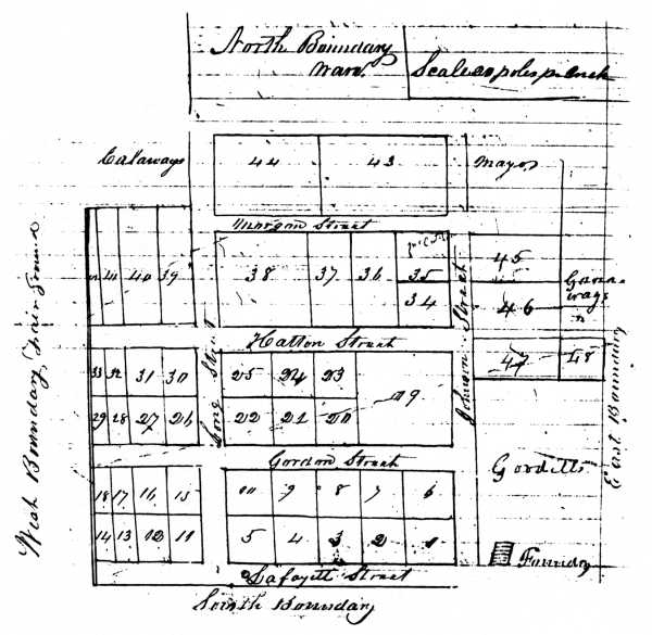 In a deed of WILLIAM F. STILL to JOHN L. LANCASTER, July 14, 1871 is a plat map showing the streets and lot numbers in the Jackson subdivision developed by W. F. Still. Registered July 14, 1871.