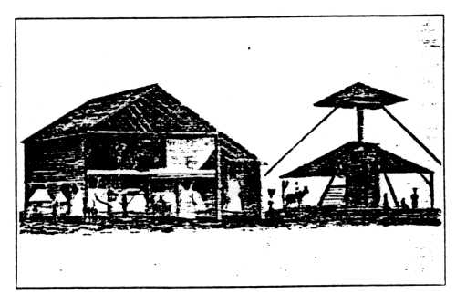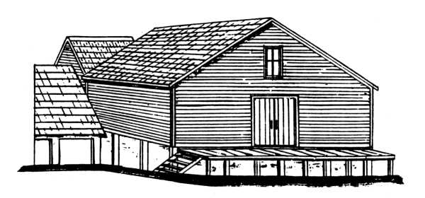 In June of 1901, S. C. Simpson agreed that since "I live with my son, Sam R. Simpson and he takes care of me" he would agree with this son and his other children, some of whom had already deeded their interest to their brother, to sell the mill and other nearby tracts to C. A. Tomlinson.[7] Eventually, several of the Pearsons bought all the Simpson land in and near Claybrook. The CLAYBROOK MILL — around 1900 — was drawn by Herschel K. Smith from an original snapshot of this establishment (kindly furnished the author by William W. and Ella Woolfolk of Spring Creek):