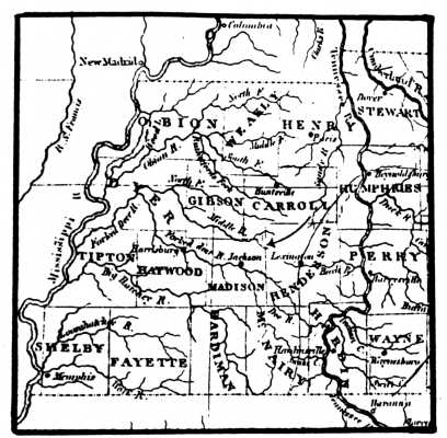 The WESTERN DISTRICT in the "Tennessee," a map by Anthony Finley, published in Philadelphia, Pennsylvania, 1830. An arrow has been drawn in to show the general locality of northeast Madison County. |