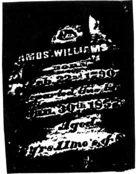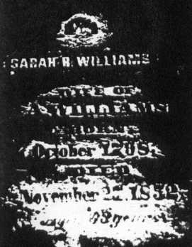 /inscribed age does not agree with inscribed birth year, 1798/1850 U.S.Census, Madison Co., Tenn. (October 24), Civil District 12, page 654: AMOS WILLIAMS, age 60, born Virginia. Real Estate worth $7000. SARAH WILLIAMS, age 60, born Virginia. EDMOND J. WILLIAMS, age 20, born Tenn. WILLIAM A. P. WILLIAMS, age 17, born Tenn. MARTHA RIDER, age 54, born Virginia. MARTHA MILLER, age 27, born Tenn.