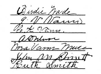 James Randall Vann was married four times; he had children with the first two wives. His fourth and last wife, Elizabeth, died October 25, 1889 and is buried in Lot 135½ in Riverside Cemetery, Jackson, Tennessee. He was first married to Mary A. Batchelor who died November 7, 1845, aged 27 years; they had two surviving children: (1) Balsora Vann who married Osias (Pete) Wade (born October 1825), July 30, 1855 (and had children: Emma Wade, wife of Mose Wafford, no children; Osias (Ozzie) H. Wade, married Annie Mathews, June 30, 1885; Vann B. Wade, born October 10, 1869, married Birdie Montague, March 1, 1893 and in December 1910 had children surviving him, Lucile Wade, age 16; Mosa Wade, age 14; Nellie Ruth Wade, age 12; Vann Wade, age 10; they lived in Crockett Co., Tenn.) (From testimony of J. V. Vann inthe case, J. V. Vann v O. H. Wade and others, Madison County Chancery #5145, original deposition) (2) Ruth Ann Vann (August 25, 1840-1932), who married, as his second wife, John Mathew Smith (Aug. 27, 1837-Nov. 3, 1917), October 20, 1858. He served in Co. K, 6th Tenn. Inf. Reg., CSA; afterwards a cotton-corn farmer in Madison County; in later years he and wife lived in Nashville, Tenn. Their children were Mary Smith (1859-Dec. 26, 1875), James Smith (died Dec. 26, 1875), Susan Thomas Smith, born about 1864.