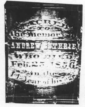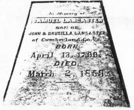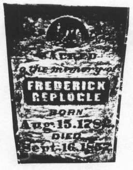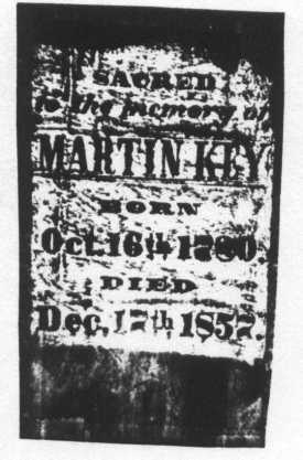 A terribly broken tombstone of Sarah H.Buchanan, wife of Thomas Buchanan, records that she was born Nov. 22, 1786 and died Feb. 24, 1860.
