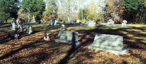 Dean Cemetery is located on Sugar Hill Road off Old Highway 13 south of Linden. At first glance it seems to be a recent community cemetery. However, it dates at least to 1896. The three oldest identified burials are 1896, 1908, and 1947. All remaining burials occurred 1958 or later. The number of markers increased almost 50% between 1992 and 2001. Only two burials were unidentified in 2001, one marked with a temporary marker plate without information and one depression marked with a fieldstone. However, the access drive could have been built over some unmarked graves as it in 2001 it passed next to the fieldstone marked grave and between the two oldest identified burials. [The fieldstone was not in the cemetery in 2004.]
