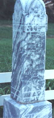 This single grave lies in a side yard about 60 yards south southeast of the intersection of the Warren Cemetery access road with Rock Creek Road in Perry County, Tennessee. My impression in October 2001 was that the grave had recently been moved to this location from somewhere else. However, I am told that the woods previously surrounding the grave were cleared. The small cemetery is a 10' x 6' area surrounded by a new fence and plantings. David Donahue recorded the Becky Tharp grave October 28, 2001.