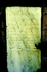 Crain, Mary, Sept. 1821-Jan. 19, 1890, "Mother" [a house-like tomb is built for these graves, with the name tombstones on the front and initial footstones on the back]Crain, Leora M., July 17, 1886-July 17, 1887, "Daughter of Sie. and M. L. Crain"
