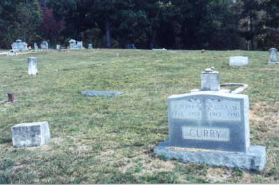 Curry, Harry, 1920-1921 (homemade, painted on a poured concrete blank marker) [first names were unreadable by 2001 and were taken from Bowen]Curry, John, no dates, military marker "Co C 48 Tenn. Inf. C.S.A."